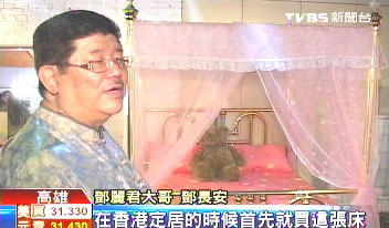 中国台湾网4月22日消息 据台湾TVBS电视台报道,台湾一代歌姬邓丽君已过世近15年,为了让更多邓丽君迷可以怀念自己的偶像,邓丽君的大哥一手打理了占地600多平方米的纪念文物馆,陈列了邓丽君最喜欢的公主床、演出服饰,还有老照片。文物馆一推出就吸引不少邓丽君迷,还有许多大陆游客争相前往参观。