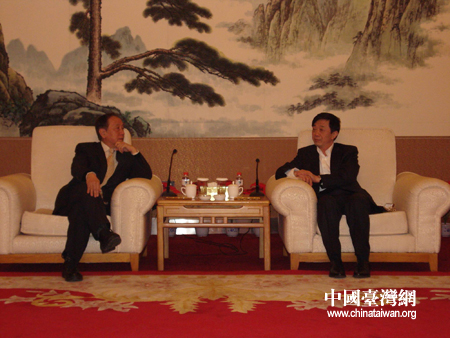 抚顺市副市长杨学海会见郁慕明。(抚顺市台办 摄)