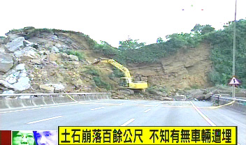 山崩发生在今天下午2时33分,大量土石崩落将路面覆盖,基隆市消防局及台当局“交通部高速公路局”已派人车前往抢救。消防局说,仍未确定是否有人车受困。