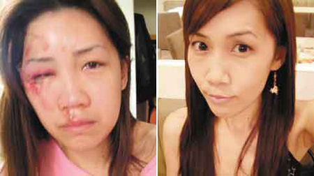 林小姐在水防道路摔车、毁容(左图)事故前是名妙龄女模(右图)。图片来源:台湾《联合报》