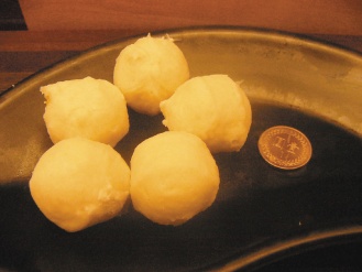 幼儿园大班的6岁学童在校吃海鲜烩饭时被鱼丸噎到,紧急送医急救仍不治,图为硬币大小的“夺命鱼丸”。图片来源:台湾《联合报》