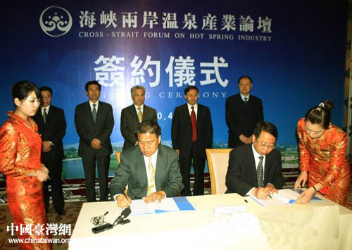 中国台湾网4月29日济南消息 山东省(商河)海峡两岸温泉产业合作区于4月27日上午在济南市商河县揭牌,济台双方就两岸温泉综合开发与利用、现代农业、休闲疗养等领域达成8个合作意向,总金额约3亿美元。济南市委常委、副市长申长友出席揭牌仪式。