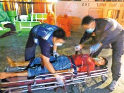 澎湖县七美卫生所紧急抢救,陈健永、曾建基两人病情获得控制,经台湾海巡队巡防艇送往澎湖三总分医院救治。钱荣添昏迷没有意识,一度心跳停止,立即插管后由直升机紧急后送高雄荣总医院,再转往小港医院,目前仍呈现昏迷,恐有生命危险。