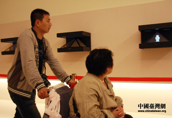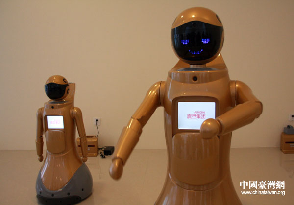 震旦馆内还展出了三个机器人“震旦小子”,寓意震旦未来向高科技领域发展。(中国台湾网 钟宝华 摄)