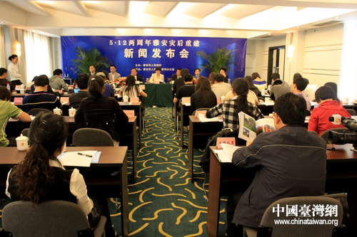 四川雅安市举行灾后重建新闻发布会,向社会各界通报雅安加快建设灾后美好家园的情况。(中国台湾网 高斯斯 摄)