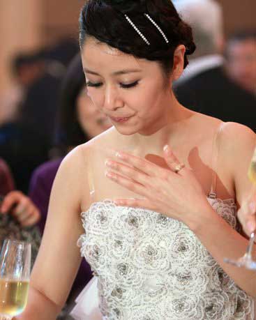 图注:林心如以手抚胸
