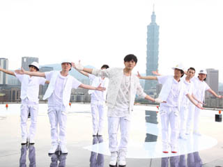 周董(中)把台北101大厦等地标拍进花博推广曲《好久不见》MV中。图片来源:台湾《苹果日报》