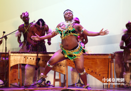 6月10日晚,在上海世博园非洲广场上的非洲舞表演。(中国台湾网 田云鹏 摄)