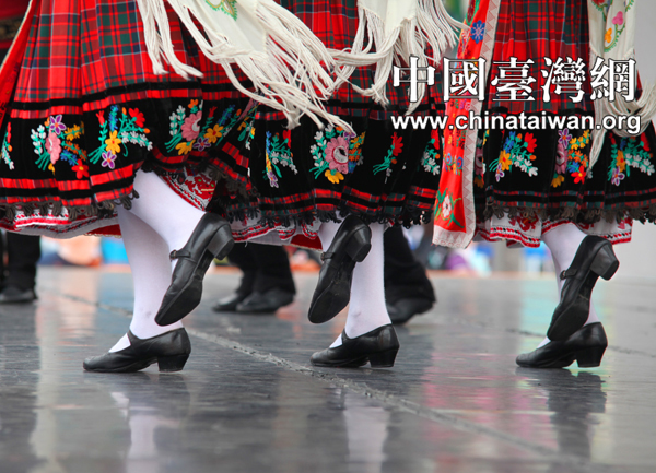 6月11日,来自保加利亚的Trakia歌舞团,在上海世博园欧洲广场为游客表演民族歌舞。女舞者身着色彩鲜艳的民族服装,跳着轻快的舞步。(中国台湾网 田云鹏 摄)