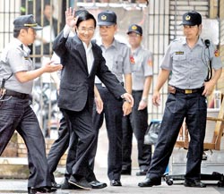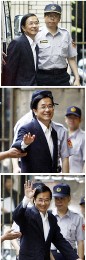 陈水扁向守候的媒体挥手。图片来源:台湾《中国时报》