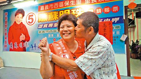 嘉义市保生里有九人竞选,萧苏明珠胜出当选,开心地接受丈夫献吻。来源:台湾《中国时报》 第1页第2页第3页第4页第5页第6页第7页第8页第9页第10页