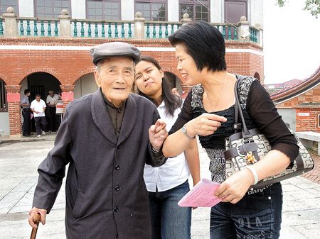 金门小径村101岁老人蔡江林(上图左)一早就由家人陪同,参与投票,来源:台湾《中国时报》 第1页第2页第3页第4页第5页第6页第7页第8页第9页第10页