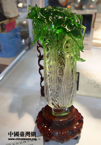 图为第三届海峡两岸文博会台北故宫博物院展出的仿翠玉白菜琉璃工艺品。(中国台湾网 张弛 摄)