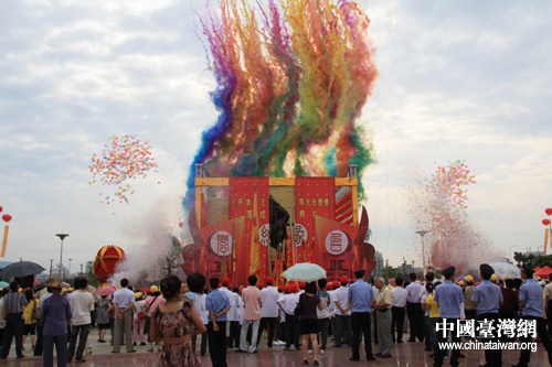 参加开漳圣王陈元光塑像落成典礼的直航台湾嘉宾,今天上午还参加了第二届海峡论坛·开漳圣王及其部属后裔回漳谒祖活动的开幕式和开漳圣王祭拜大典,并分组参观了宫庙对接活动。(中国台湾网记者 肖燕)