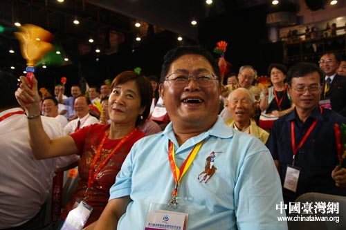 中国台湾网6月19日厦门消息 6月19日晚,第二届海峡论坛在厦门拉开帷幕,两岸近万名民众参加了大会。图为现场热情的两岸观众。(记者 杨丽)