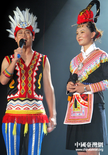 图为身着少数民族服装的晚会主持人。(中国台湾网 张硕 摄)
