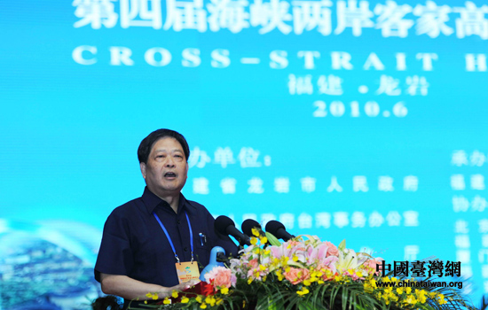 第四届海峡两岸客家高峰论坛21日在福建龙岩开幕。图为台北市新竹县同乡会首席顾问范振宗。(中国台湾网 张弛 摄)