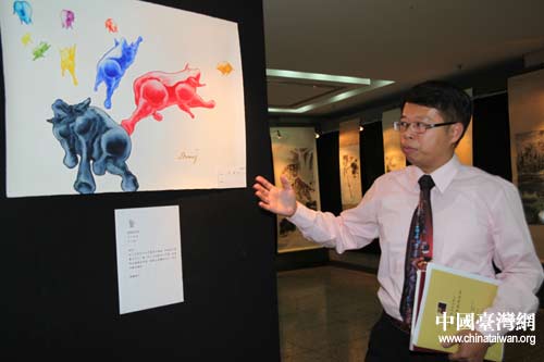 台湾画家蒋麟介绍自己的作品(中国台湾网 李典典摄)