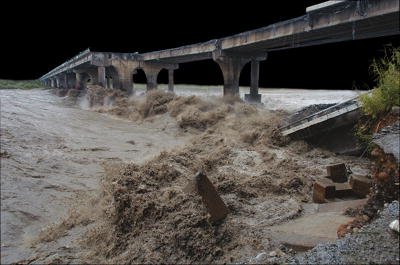 后丰大桥是台中县丰原市以及通往后里中部科学园区的交通要道,也是后里乡民对外联络主要道路。前年9月因森拉克台风来袭,造成桥墩被冲毁,桥面断裂,有6人丧生。(中国台湾网 张辰剑)