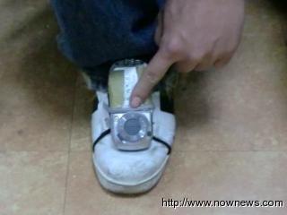 台湾一男子在鞋面黏上有摄影功能的手机,锁定穿短裙的女子进行偷拍裙下风光情事。图片来源:台湾今日新闻网