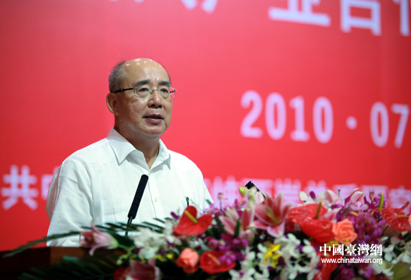 7月11日下午,第六届两岸经贸文化论坛在广州闭幕。中国国民党荣誉主席吴伯雄在闭幕式上发表讲话。(中国台湾网 钟宝华 摄)