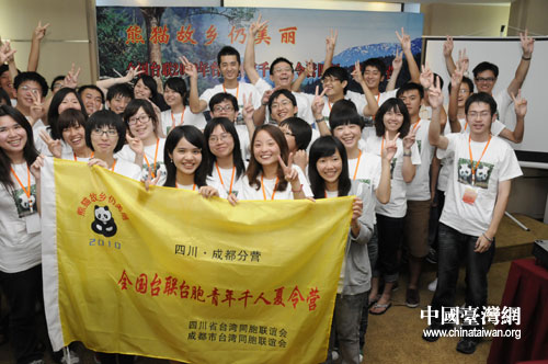 中国台湾网7月12日成都消息 7月11日下午,全国台联2010年台胞青年千人夏令营四川·成都分营——“熊猫故乡仍美丽”活动在成都隆重开营。来自海峡两岸的台湾大学、政治大学、世新大学、东吴大学、四川大学、上海海事大学等25所高校的近50名大学生参加了开营式。四川省台办机关党委书记杨永培、省台联会长刘琪出席开营仪式,省台联副会长陈开明主持开营仪式。