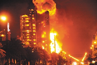 中国台湾网7月26日消息 据台湾《联合报》报道,台湾台塑石化旗下的“六轻”重油炼油厂炼油二厂昨晚8点12分因重油外泄引发爆炸,巨大的火势,远在数十公里外的云林县虎尾、斗六都看得到,云林县消防局预估火势可能要延烧两、三天以上,炼油二厂将被迫停工。