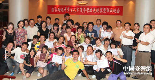 依依惜别情!(云南省台办 李仁兴 摄) 云南省台办周友亮副主任(右1)为营员颁发结业证书。(云南省台办 李仁兴 摄) 全体营员闭营合影留念。(云南省台办 李仁兴 摄)