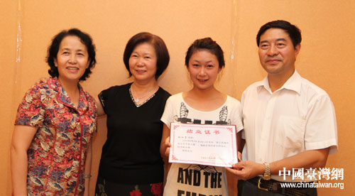 云南省台办周友亮副主任(右1)为营员颁发结业证书。(云南省台办 李仁兴 摄)