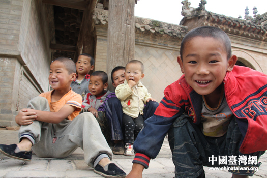 平安县洪水泉清真寺内天真无邪的孩子们 (中国台湾网 杨峰 摄)