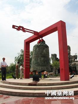 平安县境内标志性建筑“平安钟”。(中国台湾网 杨峰 摄)