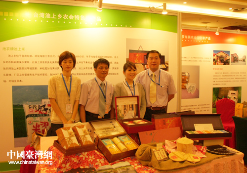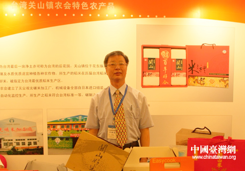 台湾关山镇农会供销部主任在展台旁介绍产品(中国台湾网 刘凯 摄)