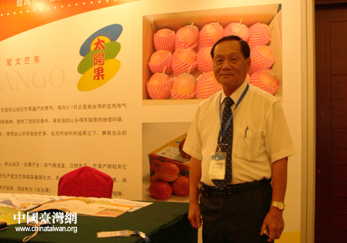 台湾屏东县枋山地区农会总干事在展台旁留念(中国台湾网 刘凯 摄)