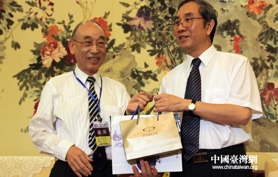 随后,马飚将一面具有浓郁广西民族特色的乐器“铜鼓”赠予台湾嘉宾,张京育则以台湾高山茶回赠。(记者 张弛)