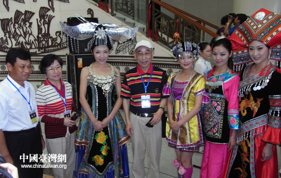 台湾嘉宾与少数民族姑娘合影留念(中国台湾网 芜同 摄)