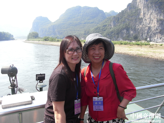 中国台湾网8月23消息 8月22日,参加“情系八桂——两岸文化联谊行”的两岸文化界人士,乘船浏览了风景如画的漓江。