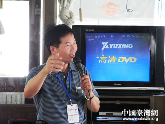台湾书法家、台中市文化局长陈志声用唐音古韵吟咏自己写的歌颂漓江的诗 (中国台湾网 芜同 摄)