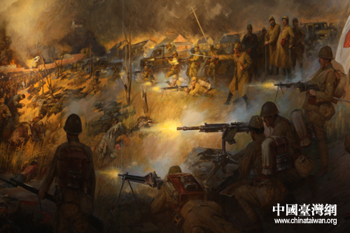 艺术家创作的巨幅油画《南京大屠杀·1937·燕子矶》局部。(中国台湾网 肖燕 摄)