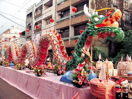 云林县虎尾中元普度由面条组成的巨龙很有看头。来源:台湾《中国时报》