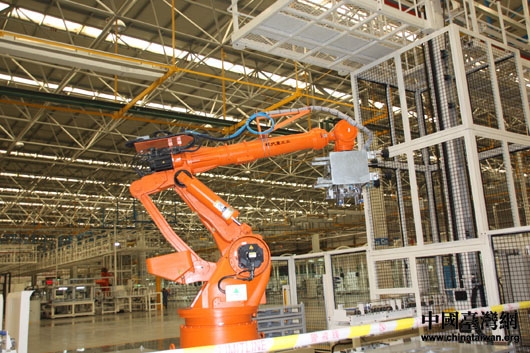 华泰汽车城车间内,自动化设备在有条不紊地工作着。(中国台湾网 王文英 摄)