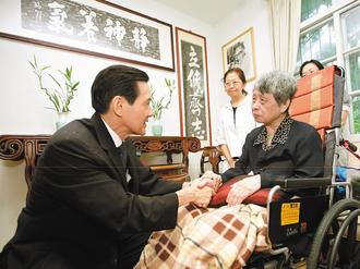 钱穆逝世20周年追思会30日上午在钱穆故居素书楼举行,马英九 (左)出席,并向钱穆夫人钱胡美琦(右)致意。 来源:台湾《联合报》