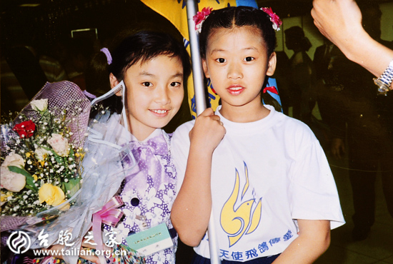 19年前,大陆和平小天使杨潇(左)与台湾和平小天使杨文(右)成为好朋友。(全国台联文宣部提供图片)