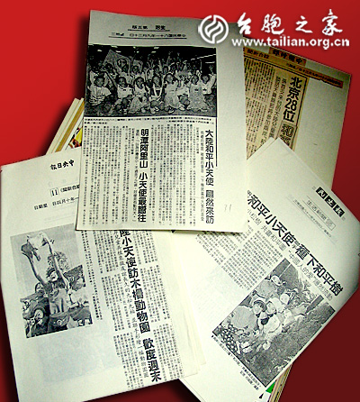至于小天使参观台北故宫、参观张大千的“摩耶精舍”、参观台中科技博物馆,游览嘉义阿里山、游览台北木栅动物园,施放和平鸽、种植和平树,在香港见到聂卫平,在台北崇光百货见到“小虎队”等等等等,无一不成了媒体关注的热点。小天使所到之处,媒体记者如影随形,事无巨细,都上了媒体版面。