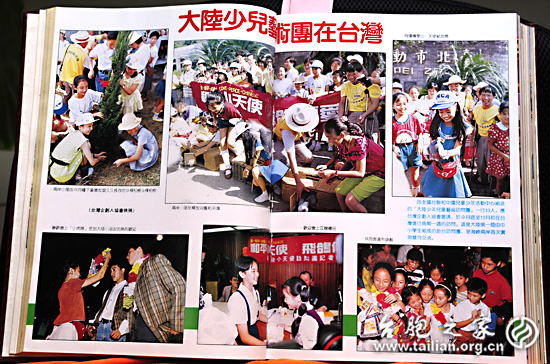 第一届大陆小天使赴台时两岸媒体的相关报道。上图为台湾媒体部分报道的剪报,下图为《台声杂志》的图片报道。(全国台联文宣部提供图片)