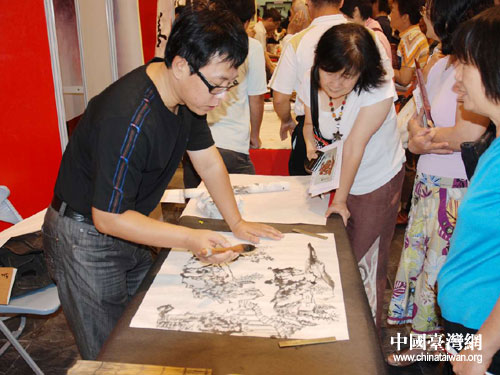 花莲市民于莉莉酷爱国画,她在河北省知名画家王立明展演台前守候了一个多小时,认真的观察、请教。她说,国画是中国传统文化中的瑰宝,但是在台湾画国画的人越来越少,很多人从来就没有见到过国画家现场作画。“我特别渴望看到优秀画家的优秀作品,渴望跟专业的画家进行交流。今天,通过跟王老师的交流,我受益匪浅。”