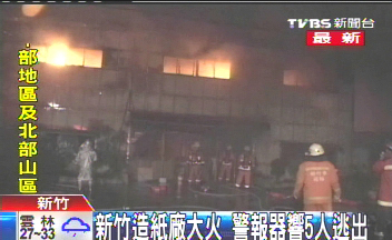 新竹一造纸厂今天凌晨1点失火,所幸无人伤亡。 图片来源:台湾TVBS电视台