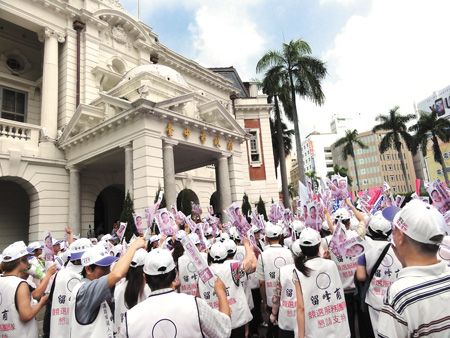 台中市府广场涌入参选人大批支持者,形成旗海飘扬的热闹场面。来源:台湾《中国时报》