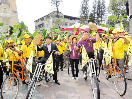 台中市议员参选人以高颈自行车队造势。来源:台湾《中国时报》