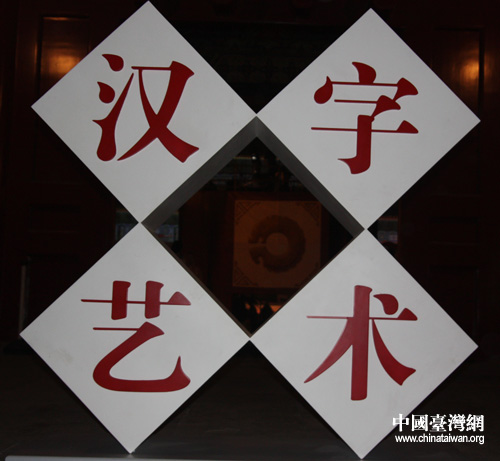 太庙前的首届“两岸汉字艺术节”文字LOGO。(中国台湾网 高斯斯 摄)