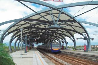 “真的很像大瓜棚,”台中来的林先生说,火车站有高铁的宏伟,但没有高铁的拥挤。登上三层楼高的高架火车站,坐在月台上吹风,放眼尽是绿油油的农田,还可远眺太平洋及龟山岛,“让人舍不得离开”。